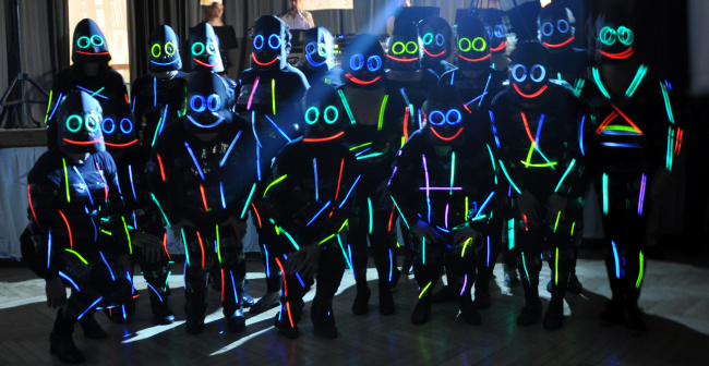 Všichni už očekávali, jaké vystoupení si připravili členové KD-I pro tento večer. V osm hodin se konečně dočkali. Vystoupení děvčat bylo velice originální. Inspirovalo je půlnoční vystoupení stárků z roku 2012. Jejich oblečení bylo perfektní. Na jejich tanec se v sále zhaslo. Tančily v černém a po celém těle měly přilepeny svítící tyčinky různých barev, při tanci a pohybech na moderní melodie děvčata zářila a svítila jako ohňostroj, moc působivé. Líbilo se i s chybičkami.